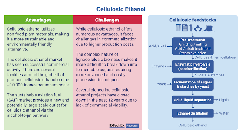 Overview of emerging cellulosic ethanol market. Source: IDTechEx